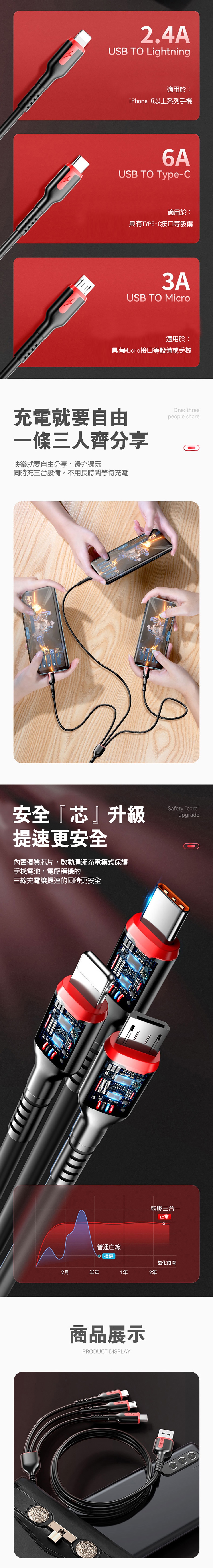 .三部手機,同時快充,同時充三台設備毫無壓力,單線TYPE-C輸出,6A大電流,安全快充,不傷機。