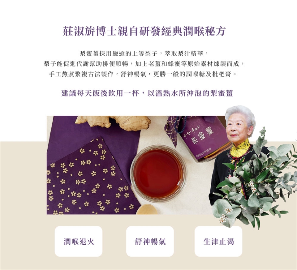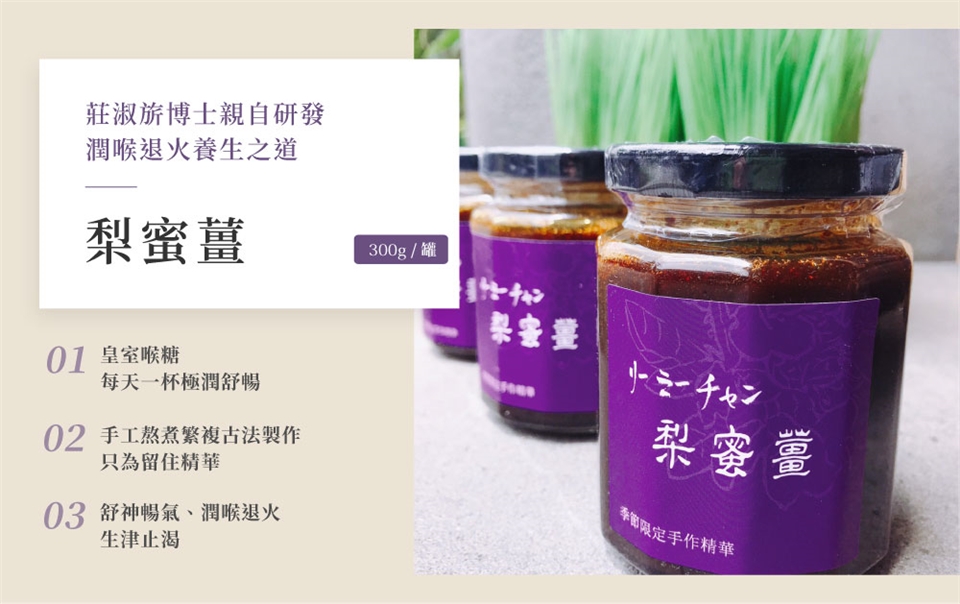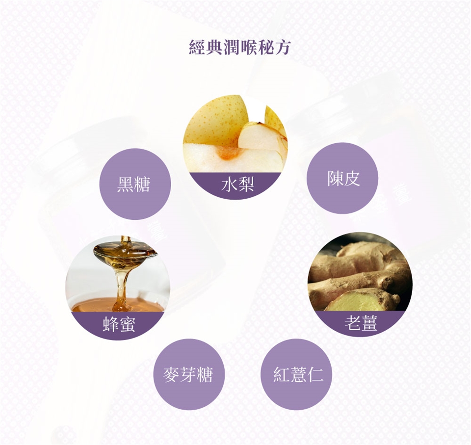 商品成份:蜂蜜、水梨、老薑、紅薏仁、黑糖、陳皮、麥芽糖