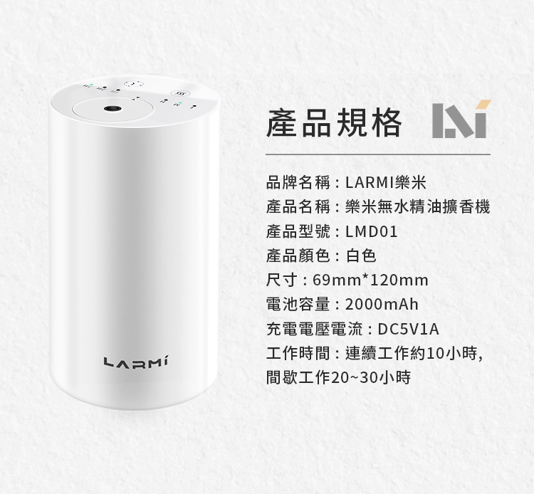 樂米 LARMI 無水擴香機 LMD01 香薰機 擴香儀 精油機 精油擴香 車用香氛 無水香氛機 車載香薰機