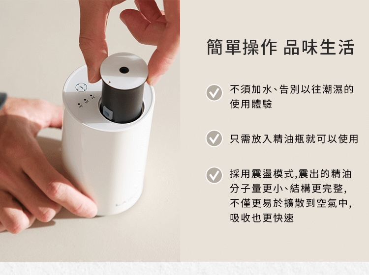 讓每一個空間都充滿自然的香氣,無需加水、無需擔心濕氣。