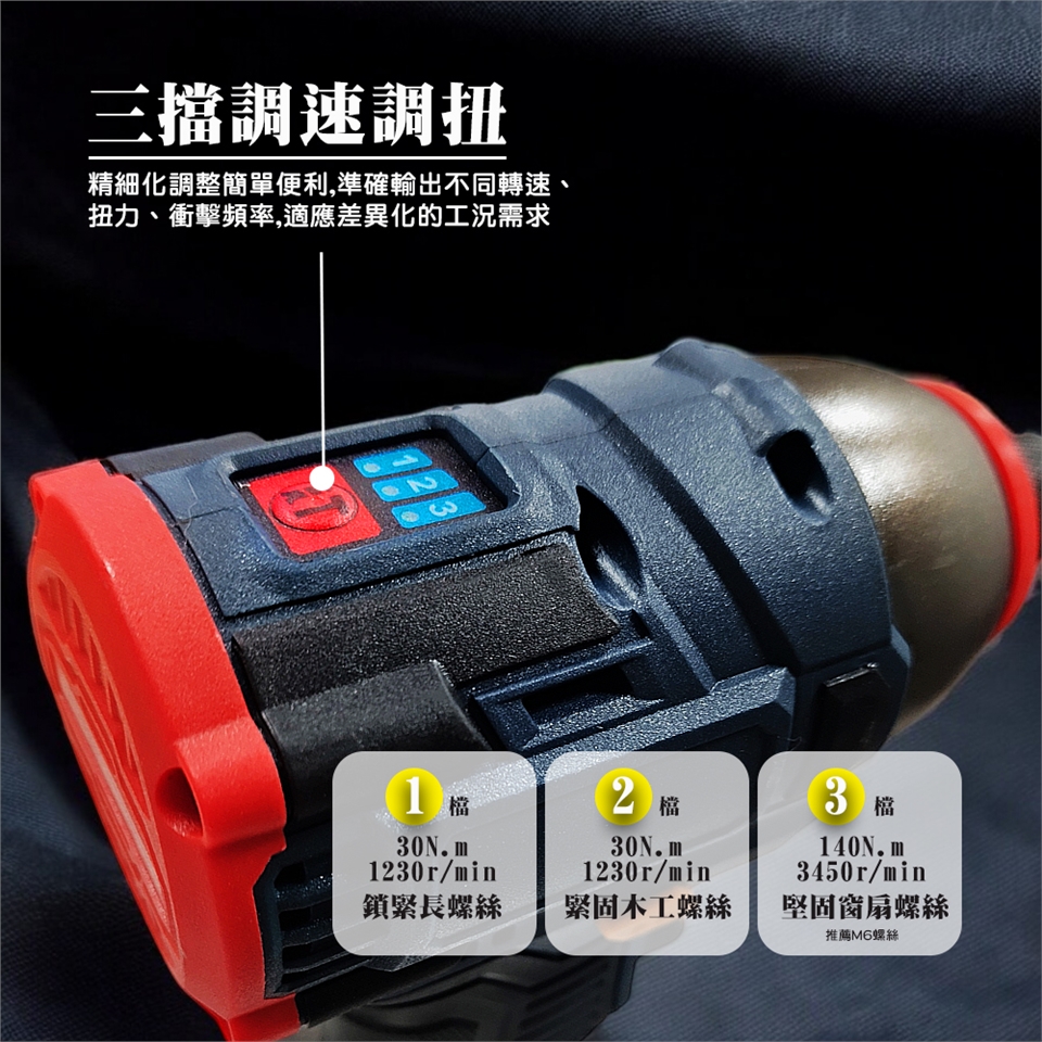 轉速檔位:扭力檔位3檔/轉速1600轉