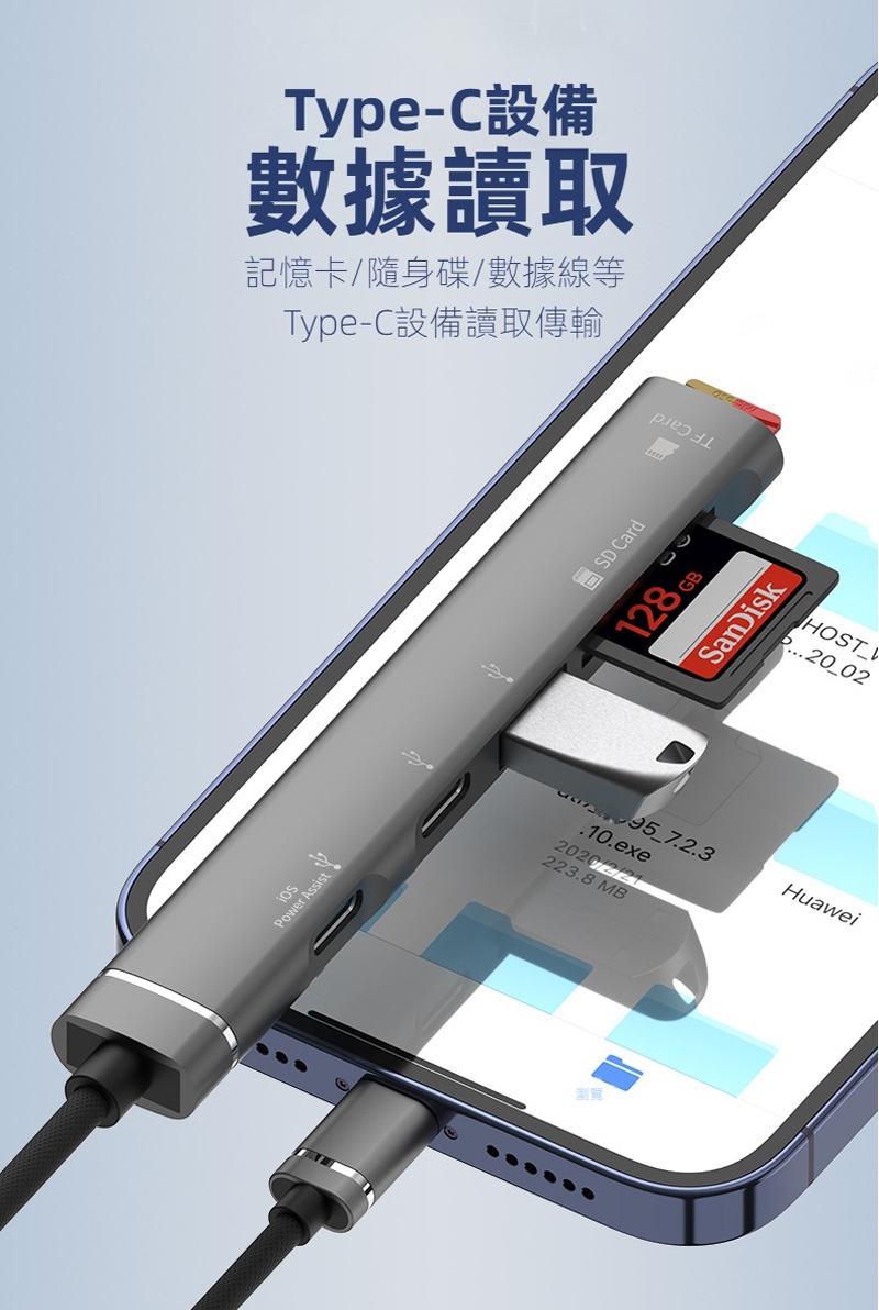 ◆擴充1組USB-A +1組USB-C(Type-C)+PD充電孔+ SD記憶卡+ TF記憶卡