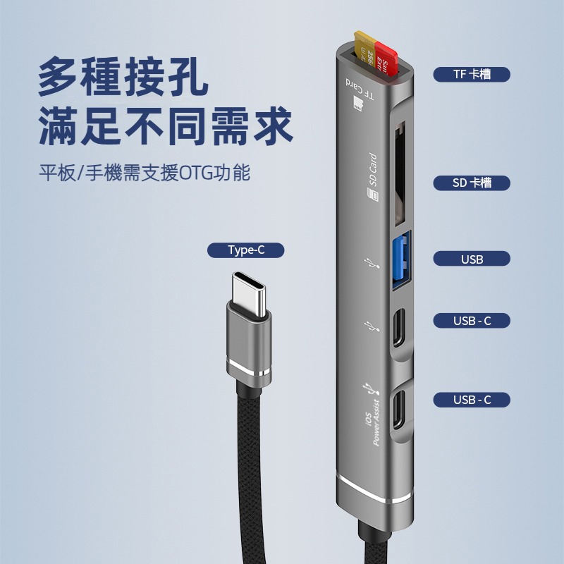 ◆Type-C標準接頭,多功能擴充5埠