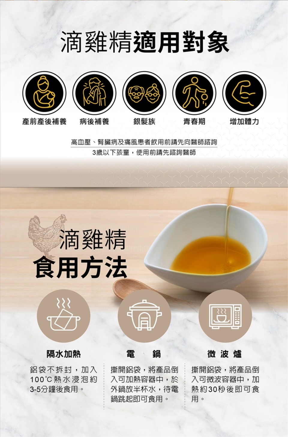1.高血壓、腎臟病及痛風患者飲用前請先向醫生諮詢。