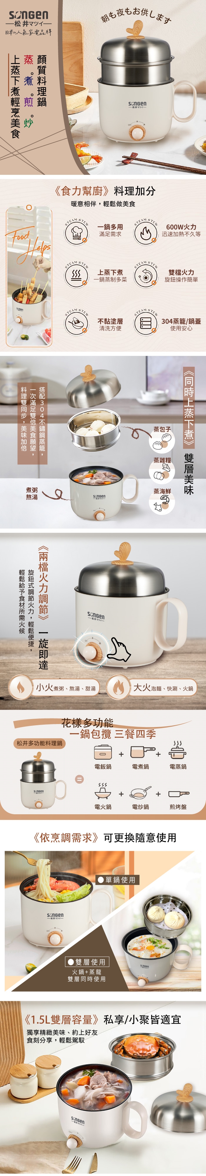 配 件:304#不鏽鋼蒸籠/鍋蓋