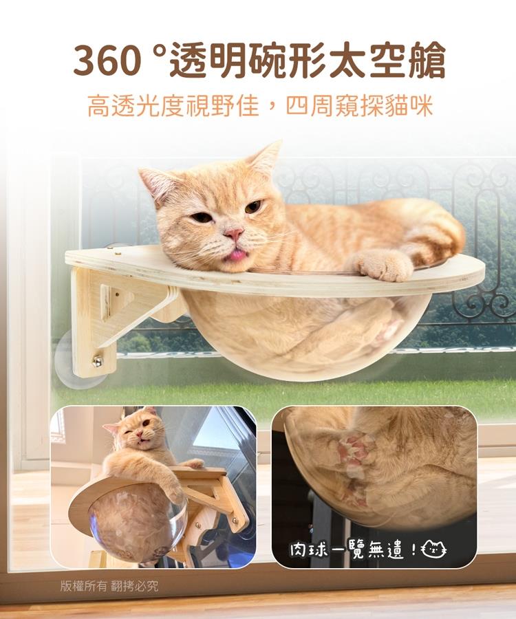 360°透明太空艙窗設計,還能提供貓咪一個高處的觀景位置,