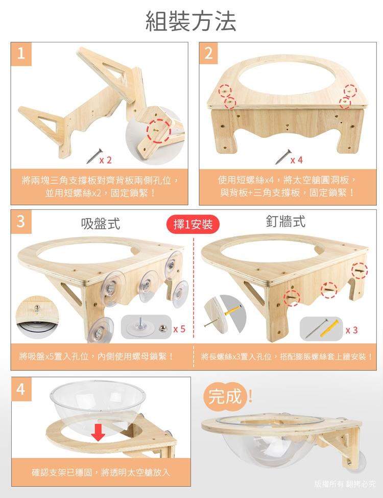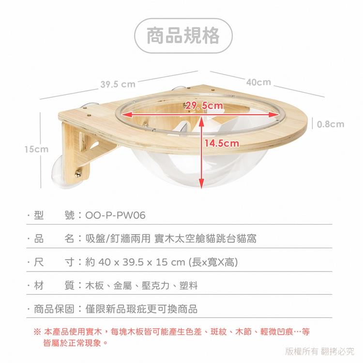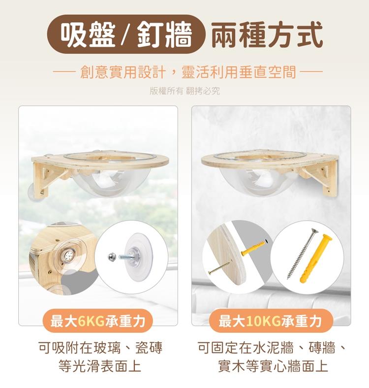 .品  名:貓本屋 吸盤/釘牆兩用 實木太空艙貓跳台貓窩