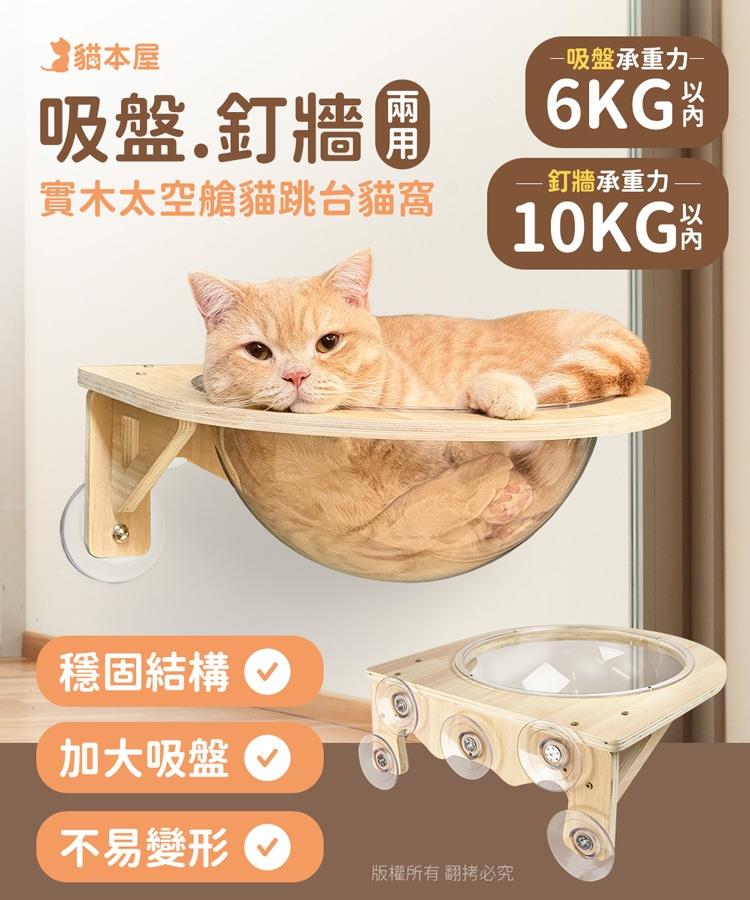 貓本屋 吸盤/釘牆兩用 實木太空艙貓跳台貓窩
