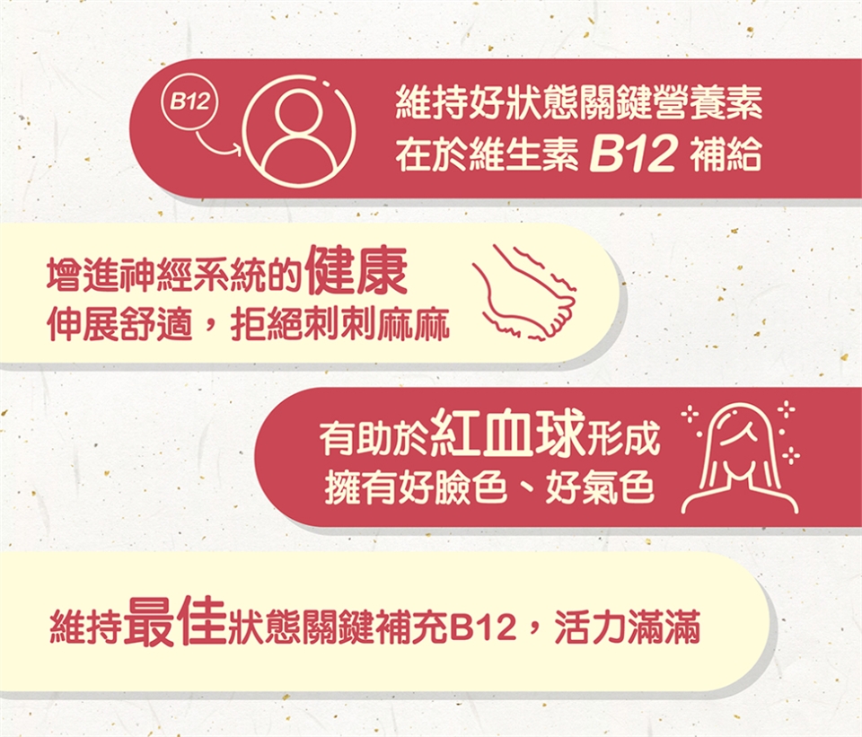 麥芽糊精、微結晶狀a-纖維素、硬脂酸鎂、羥丙基甲基纖維素、二氧化矽、聚乙二醇[聚乙二醇、二丁基羥基甲苯(抗氧化劑)、甲鈷胺(甲基鈷鈷胺)