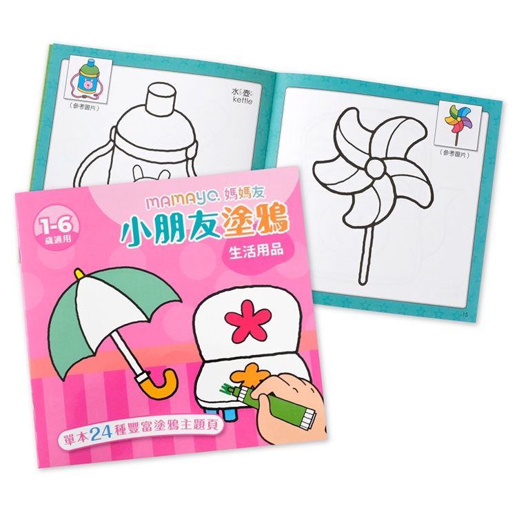 全系列12本共超過280款插圖,並在內容結合注音/英文等,讓小朋友邊玩邊畫邊學習