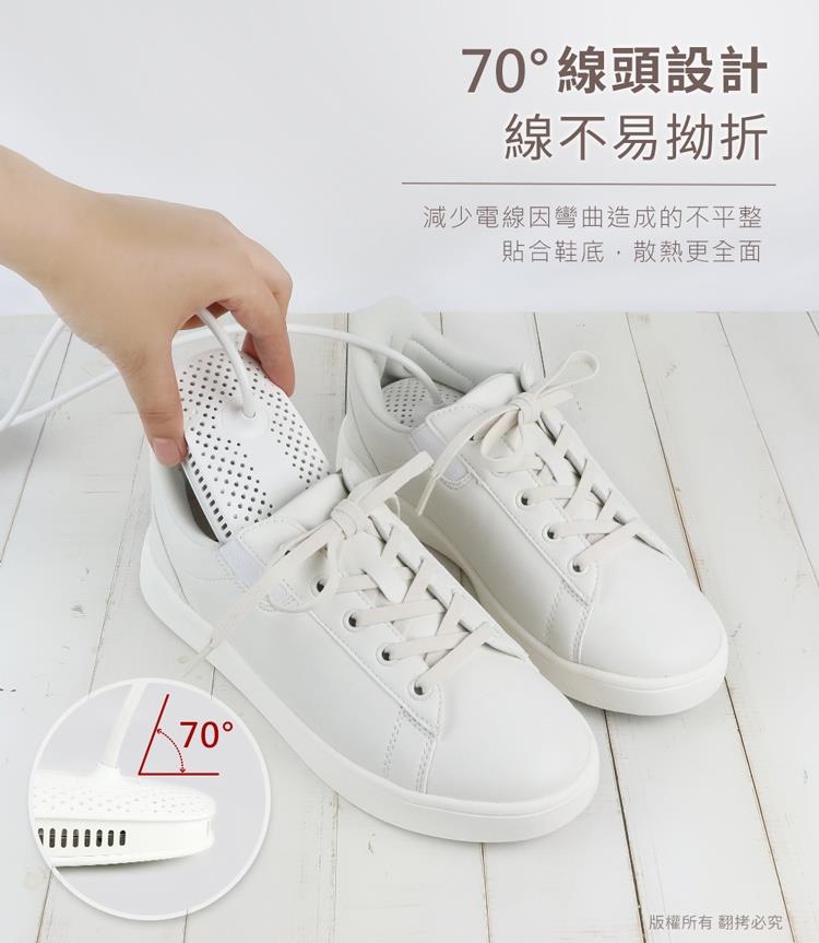 ◆70°線頭設計,線不易拗折,使烘鞋器可完全贴合鞋底