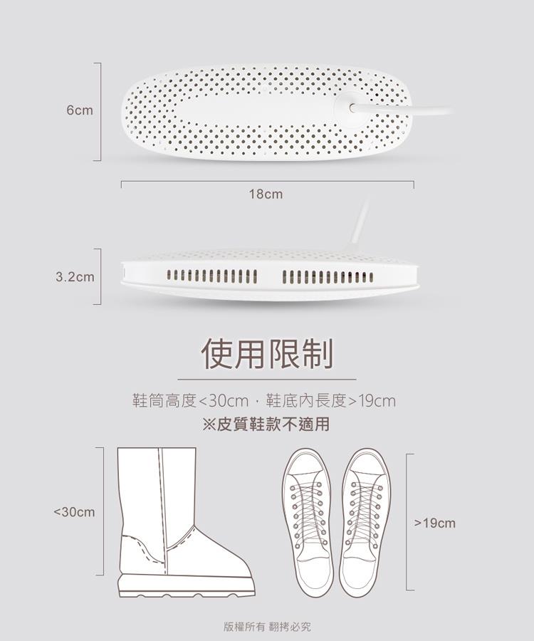 ※本產品適用於鞋筒高度30cm以下,鞋底內長度19cm以上的鞋型。