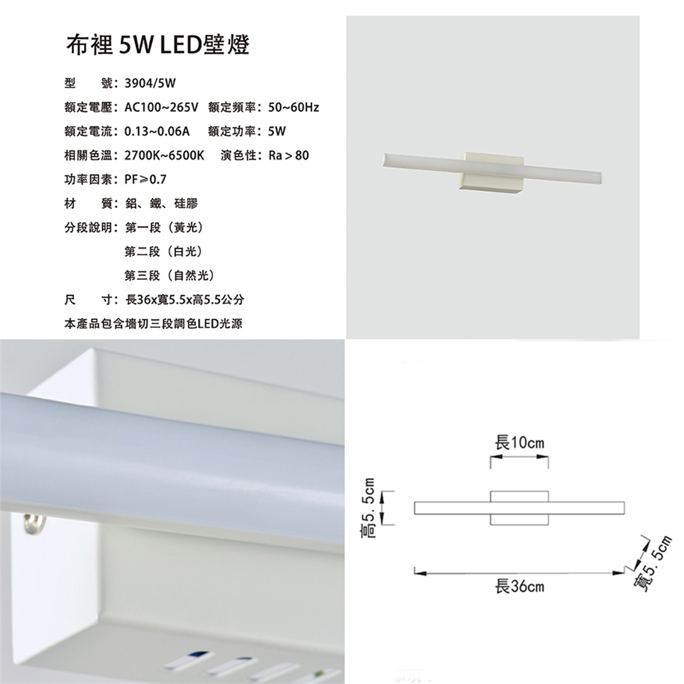 光源 : 本產品包含壁切三段調色LED光源