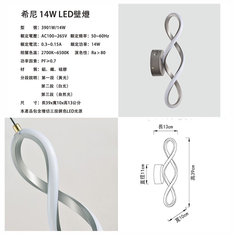 本產品包含壁切三段調色LED光源