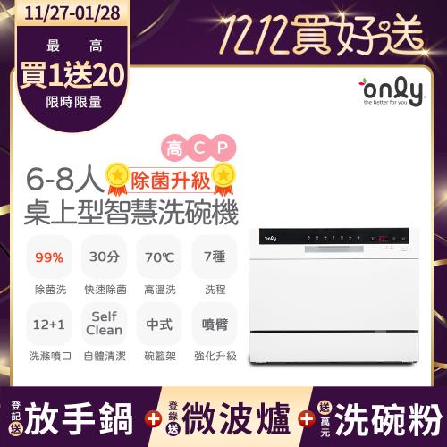 【1/29保證年前到貨~要買要快】only高CP款6-8人份桌上型智慧洗碗機OKD06-M22美型白(獨立式/可嵌入)