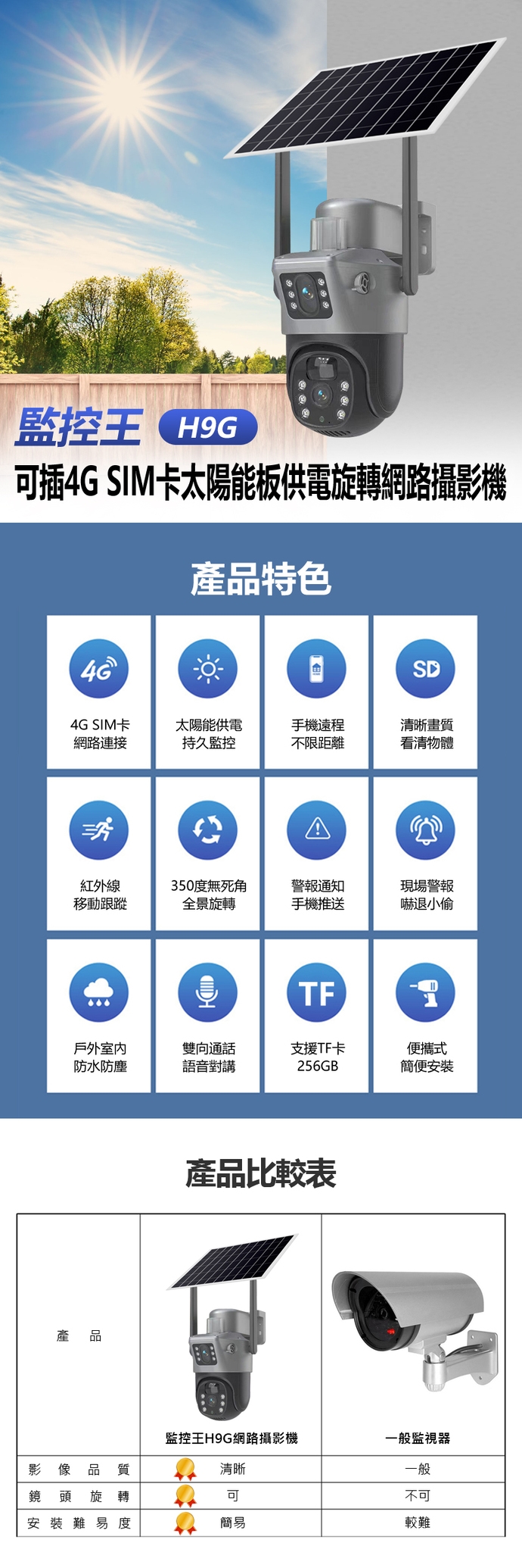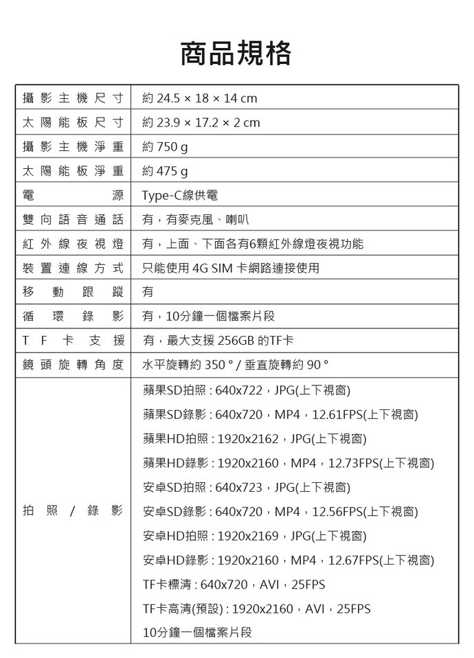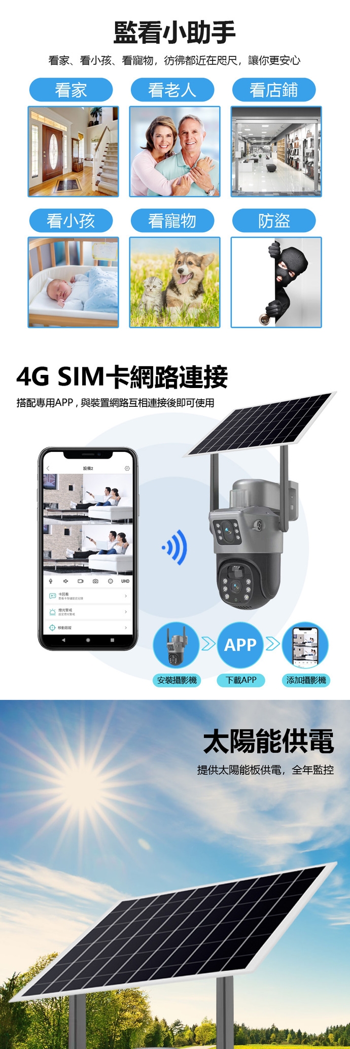 ★ 支援4G SIM卡網路連接,手機遠程監控