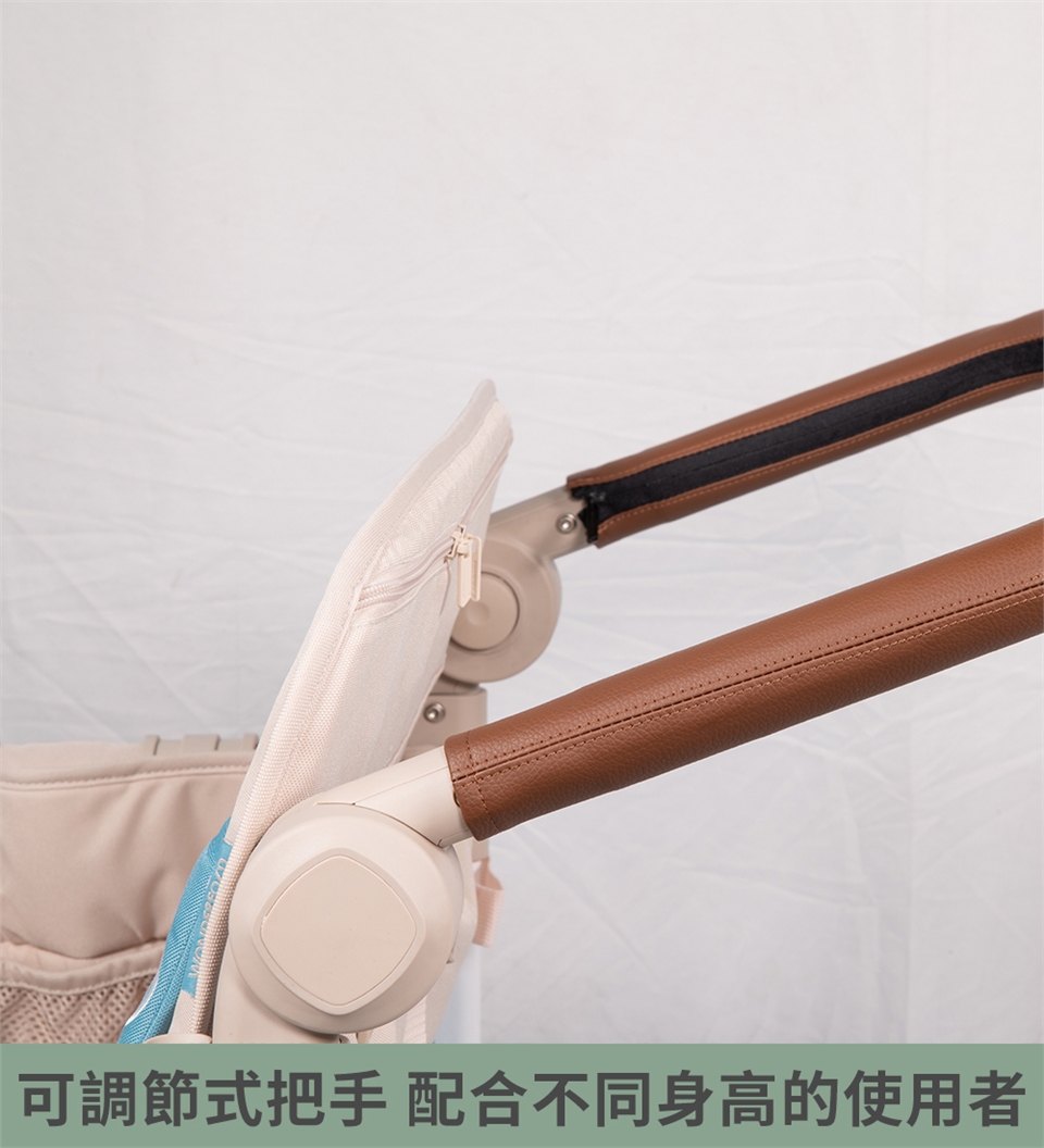 . 調節式皮革把手,符合所有身高的家長。