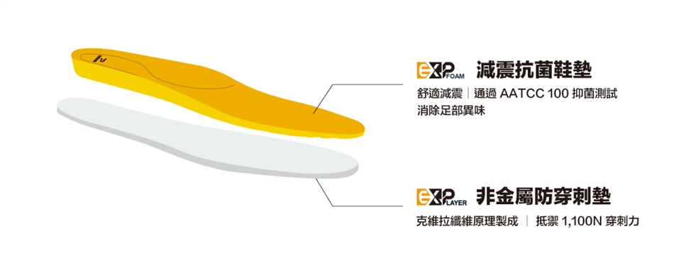 防穿刺    "ExpLayer 非金屬防穿刺墊(Kevlar原理) ∣ 可抵禦 1,100N 穿刺力