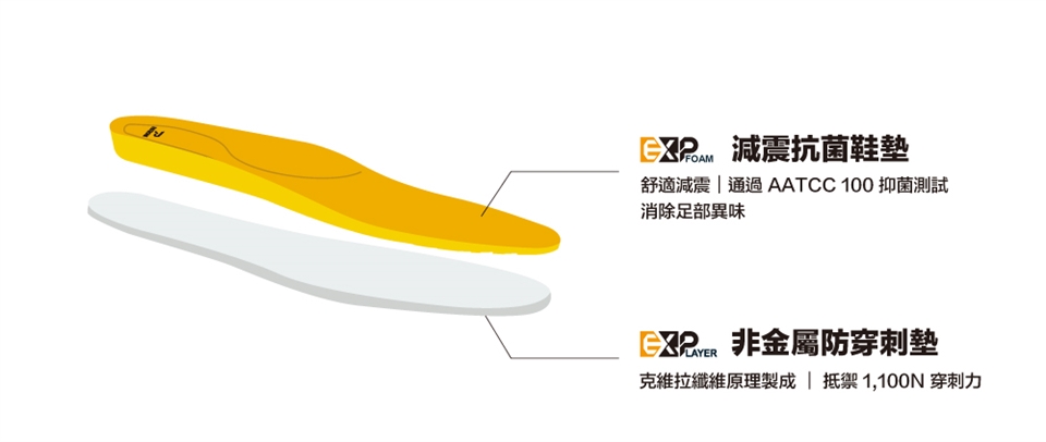 防穿刺    "ExpLayer 非金屬防穿刺墊(Kevlar原理) ∣ 可抵禦 1,100N 穿刺力