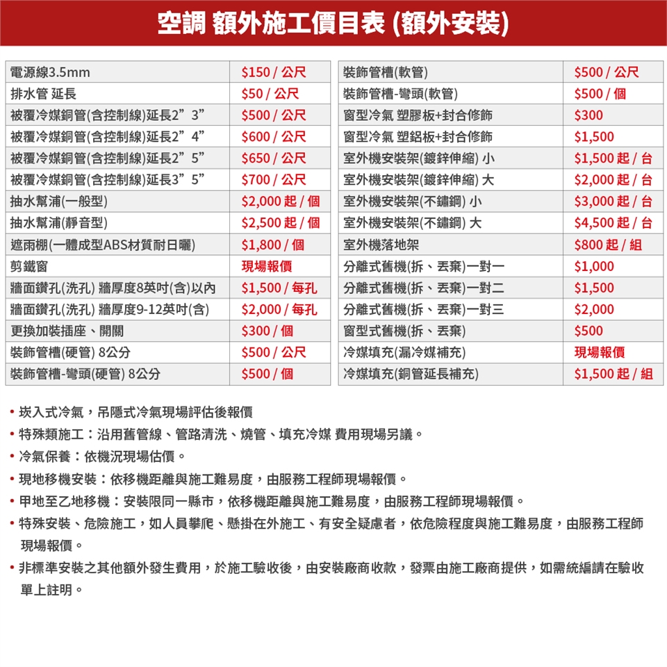 ※出貨後3-5個工作天,將會有安裝人員電聯確認安裝日期,如有額外施工費用可一同詢問。