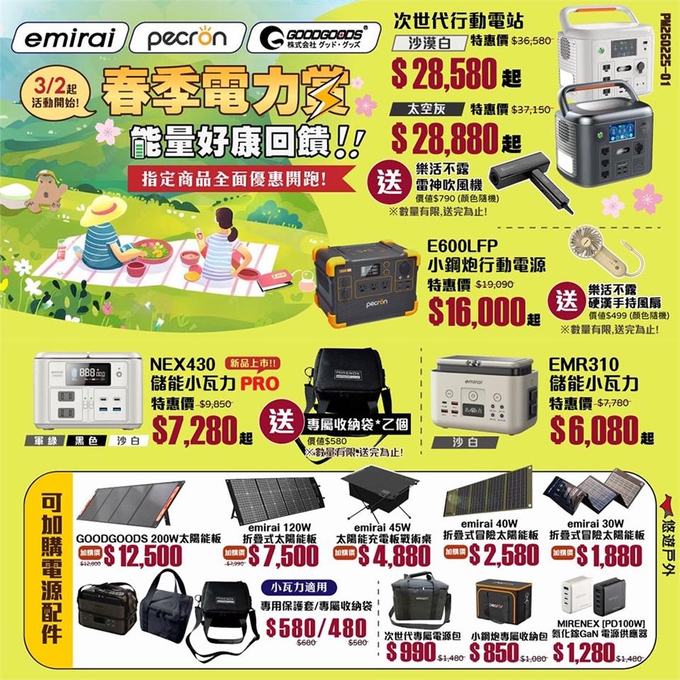 包裝物:電源主機、電壓供應器、AC充電線、車充線、