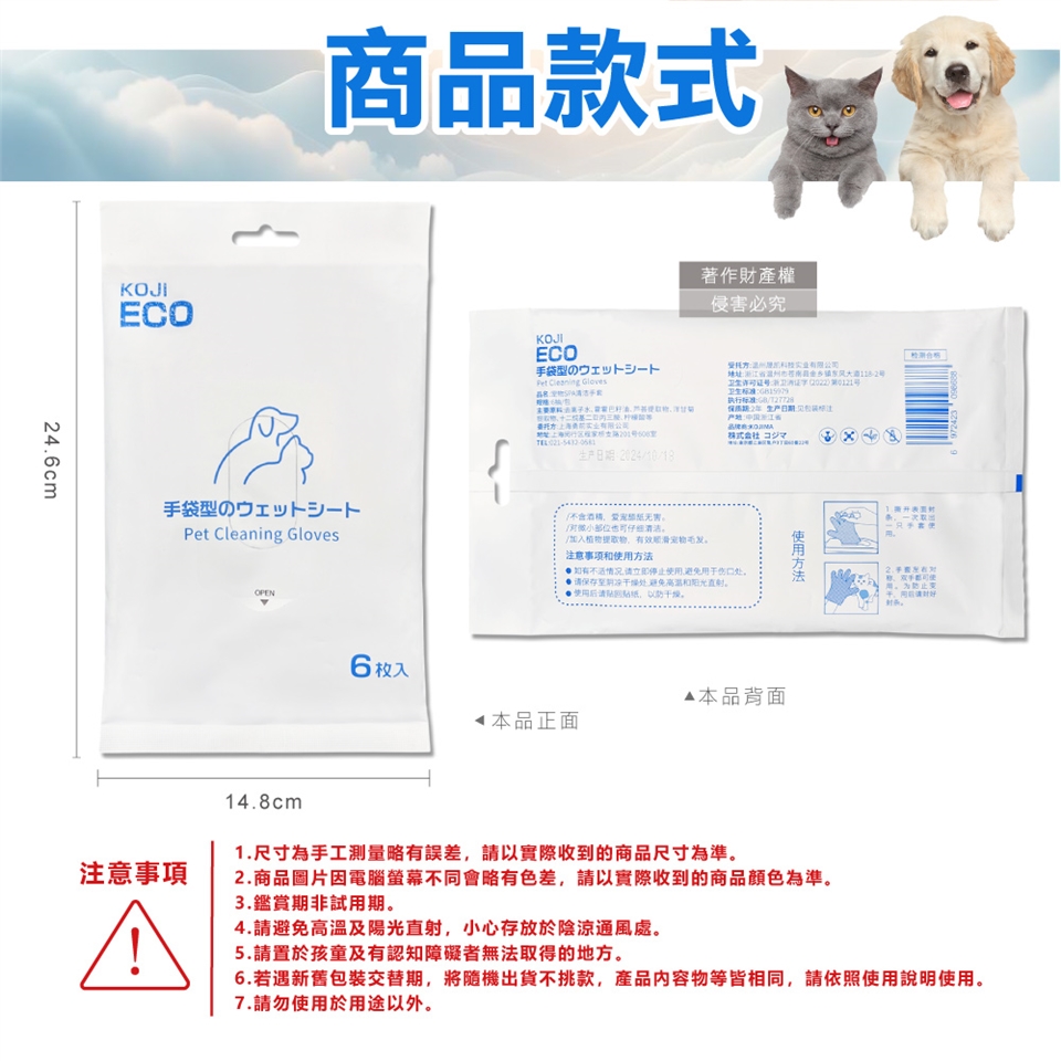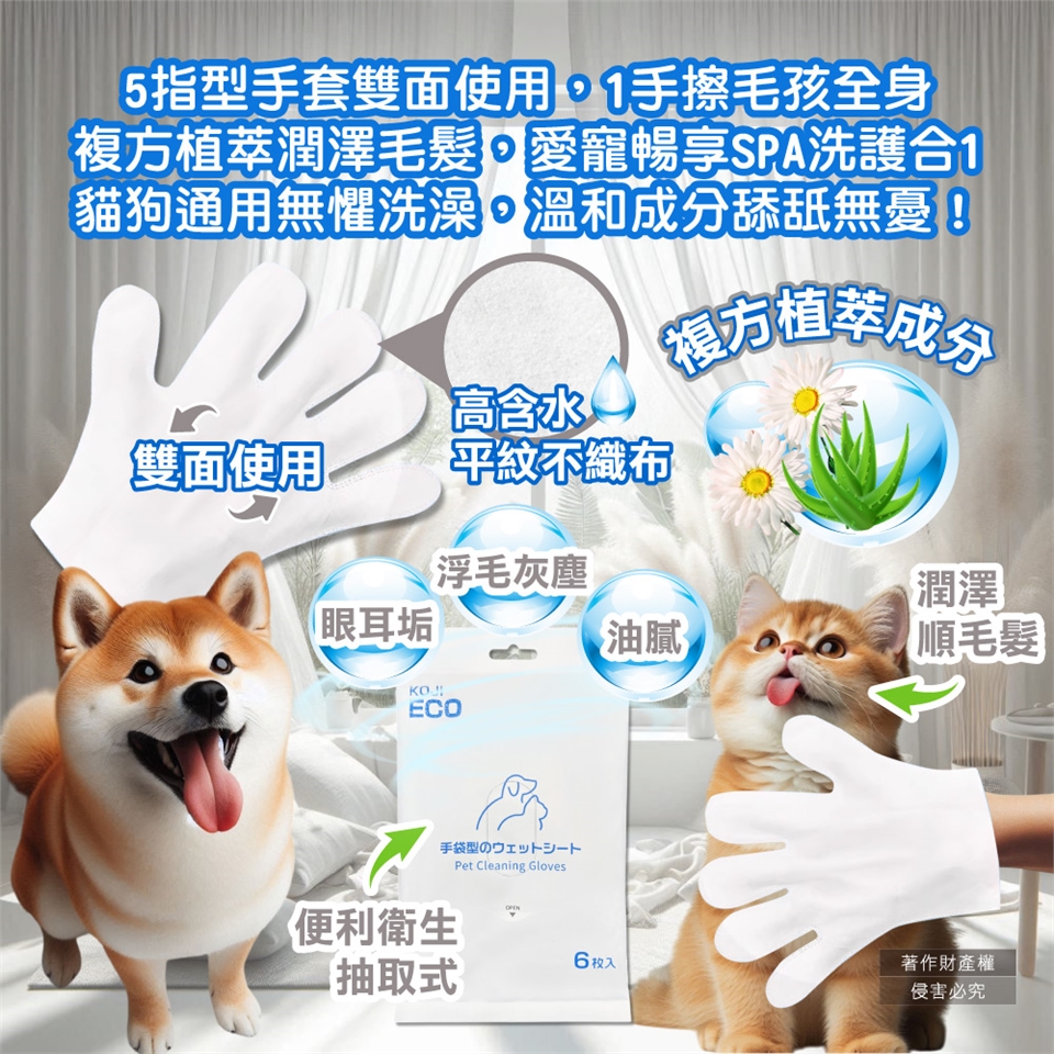●品名:寵物SPA護毛5指型全身清潔手套濕巾