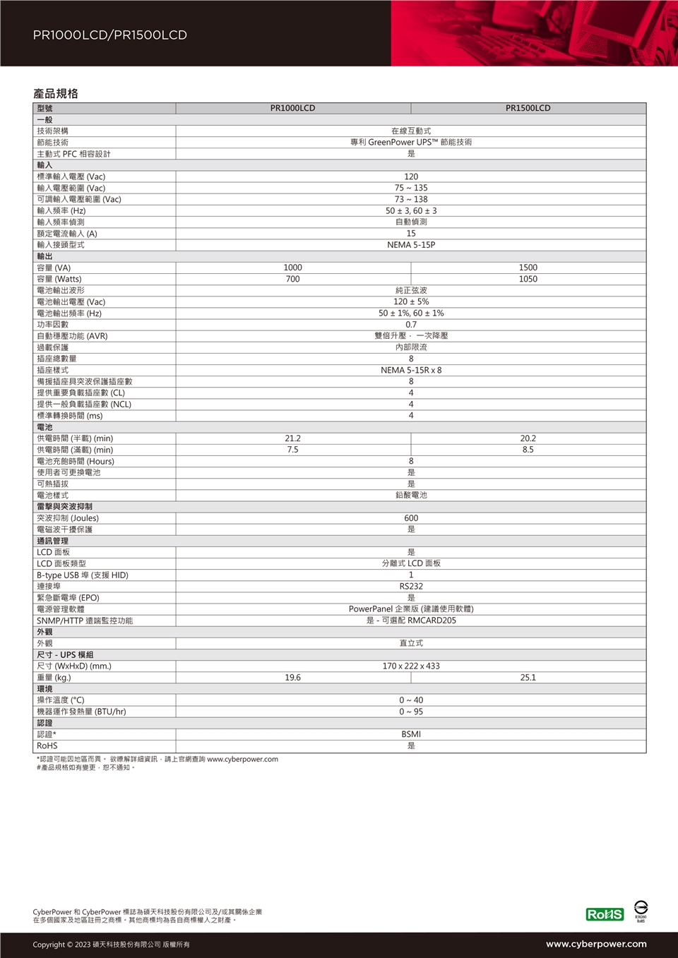 產品型錄規格如有更改,恕不另行通知