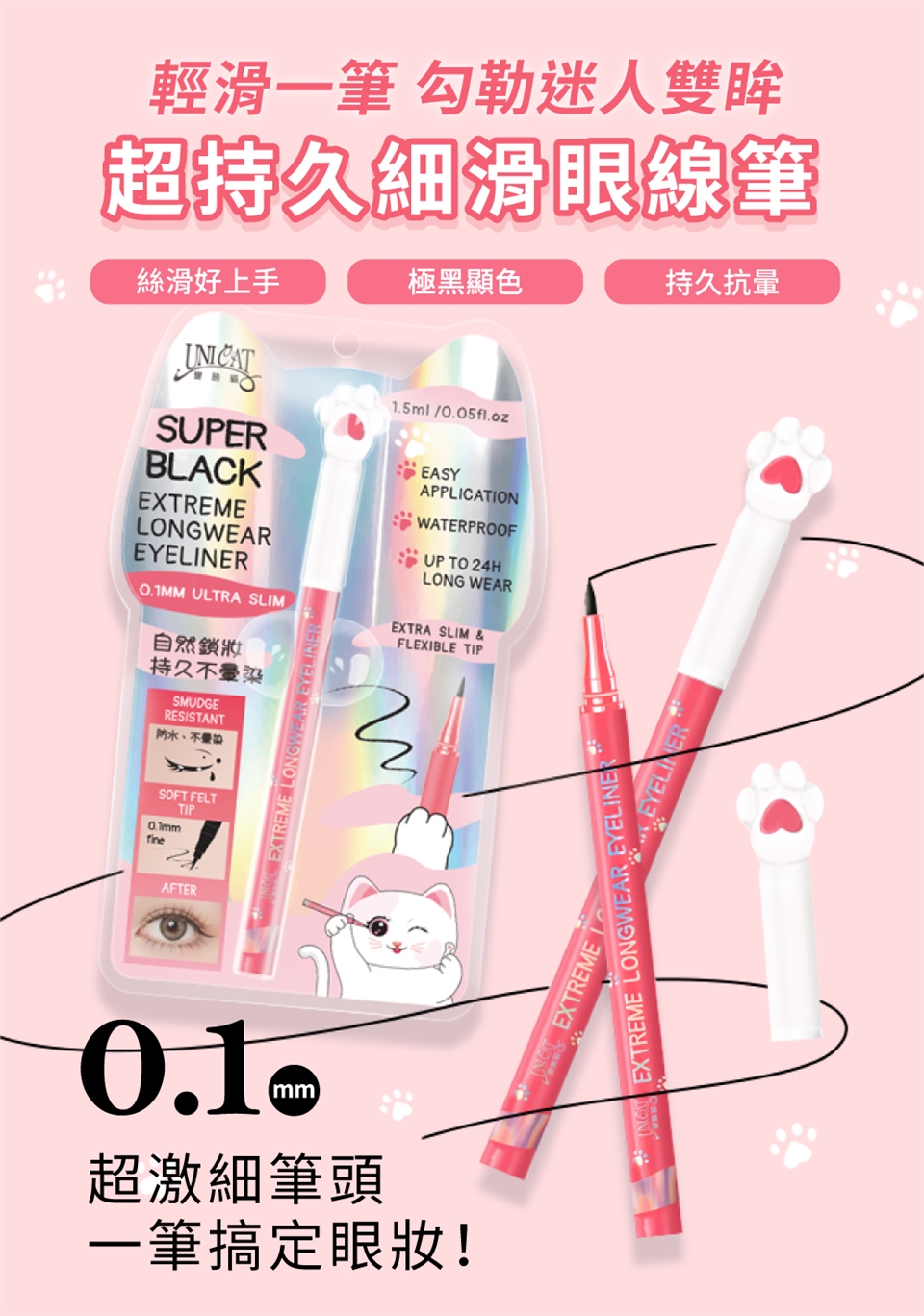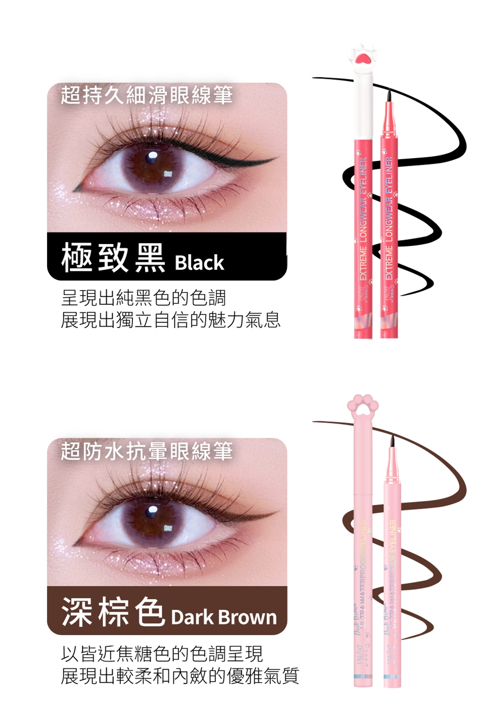 強力持久 防水不暈染 輕鬆描繪睫毛間隙與勾勒眼尾