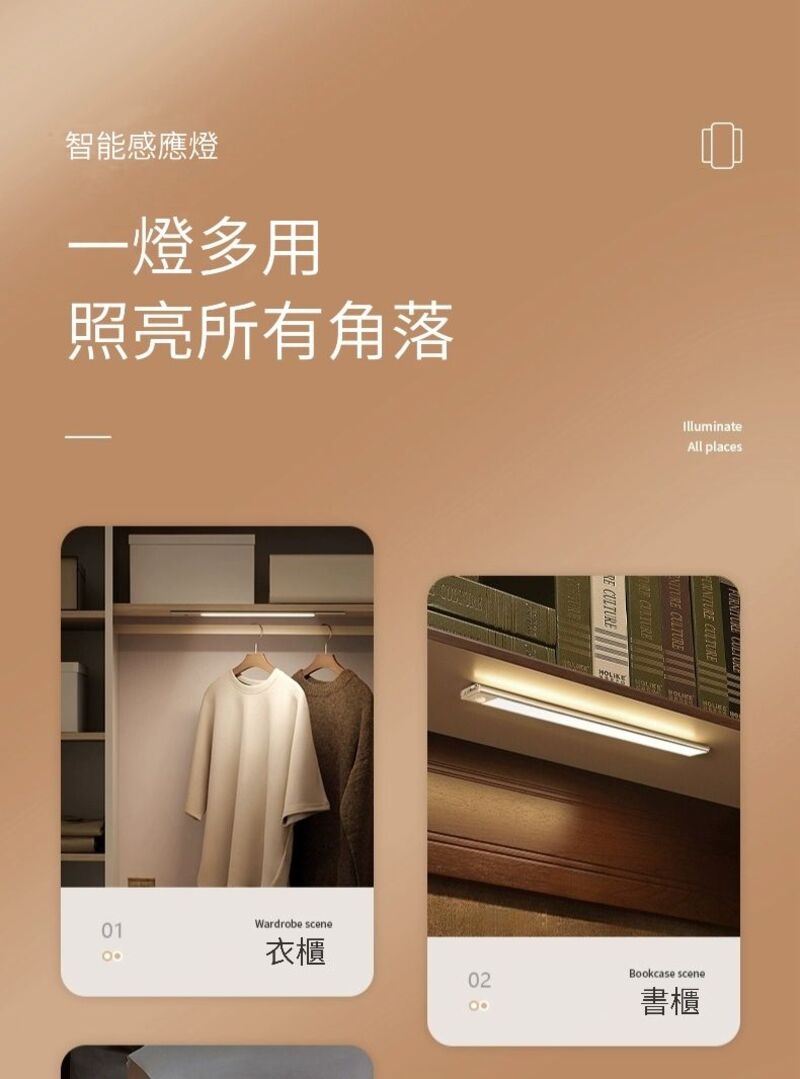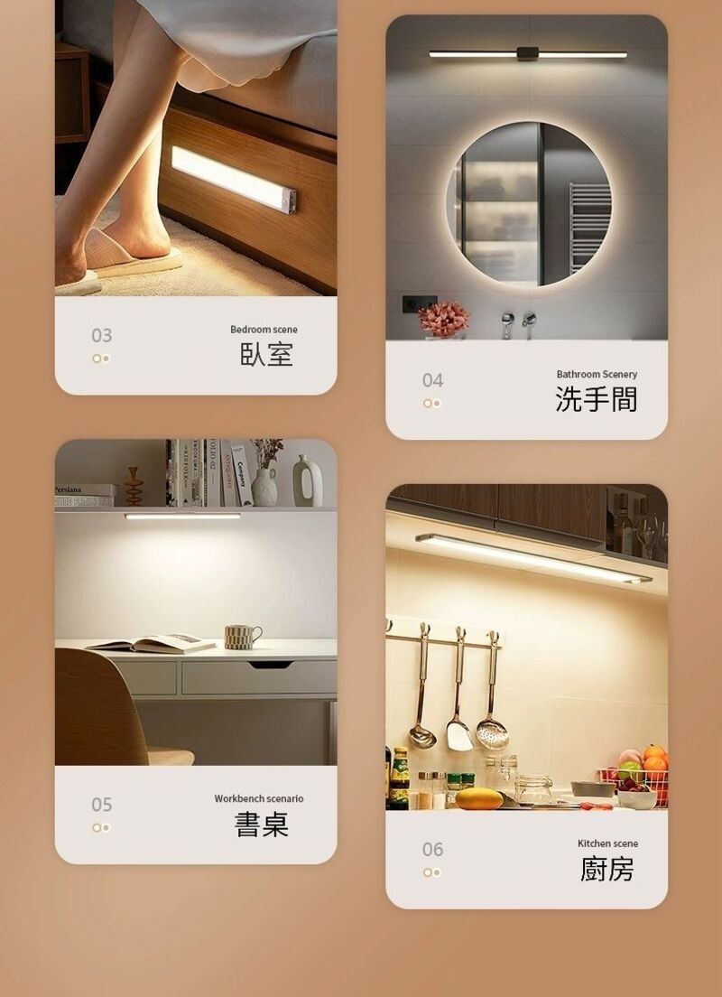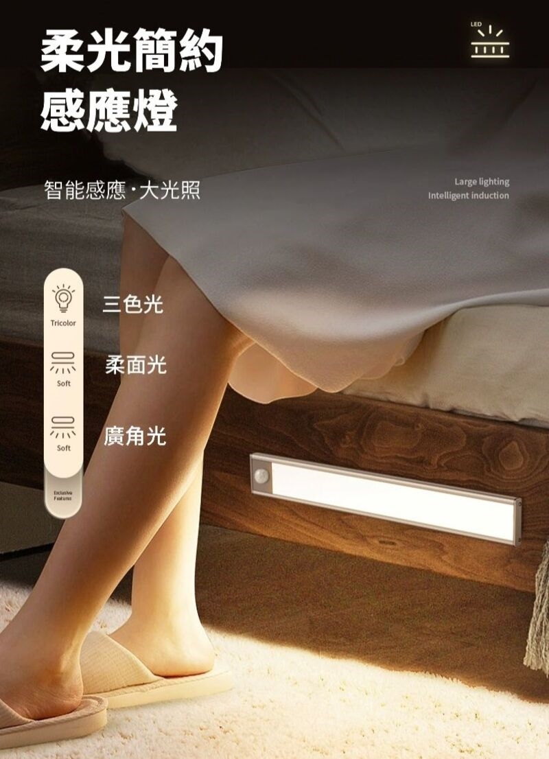 智能感應・無極調光: 自動感應亮度,無需手動調節。