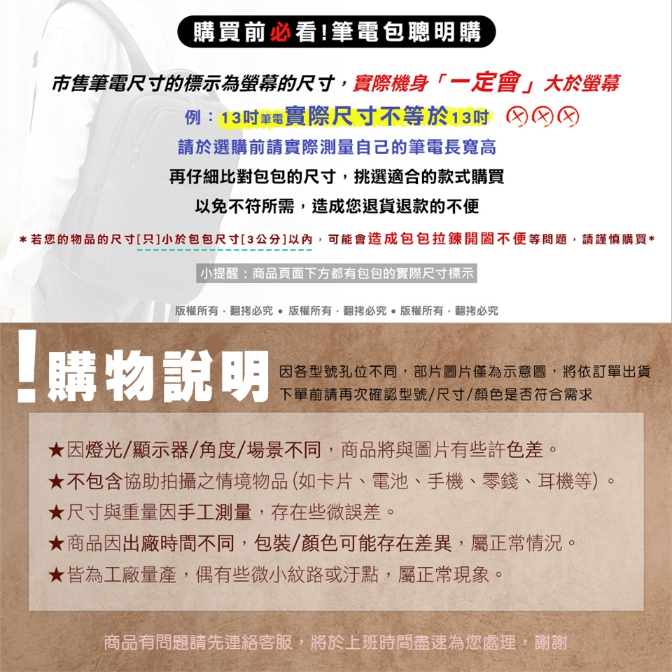 *若您的物品的尺寸[只]小於包包尺寸[三公分]以內,可能會造成包包拉鍊開闔不便等問題,請謹慎購買