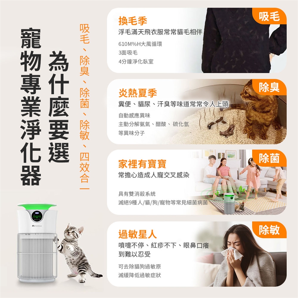 •吸毛、除臭、除菌、除敏 四效合一