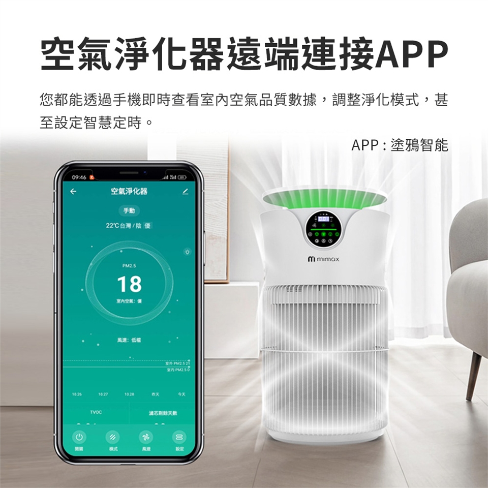 •可透過手機APP查看室內空氣品質數據