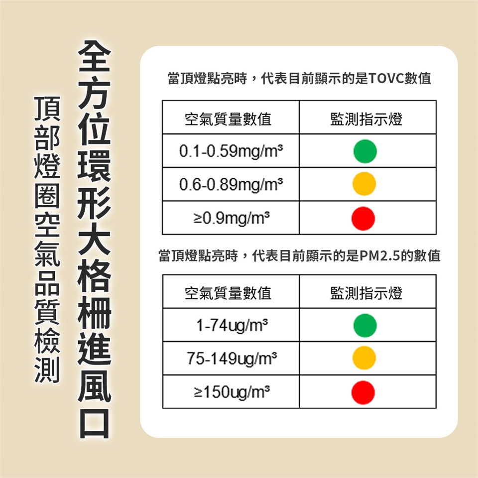 •及時偵測PM2.5 及 TVOC異味