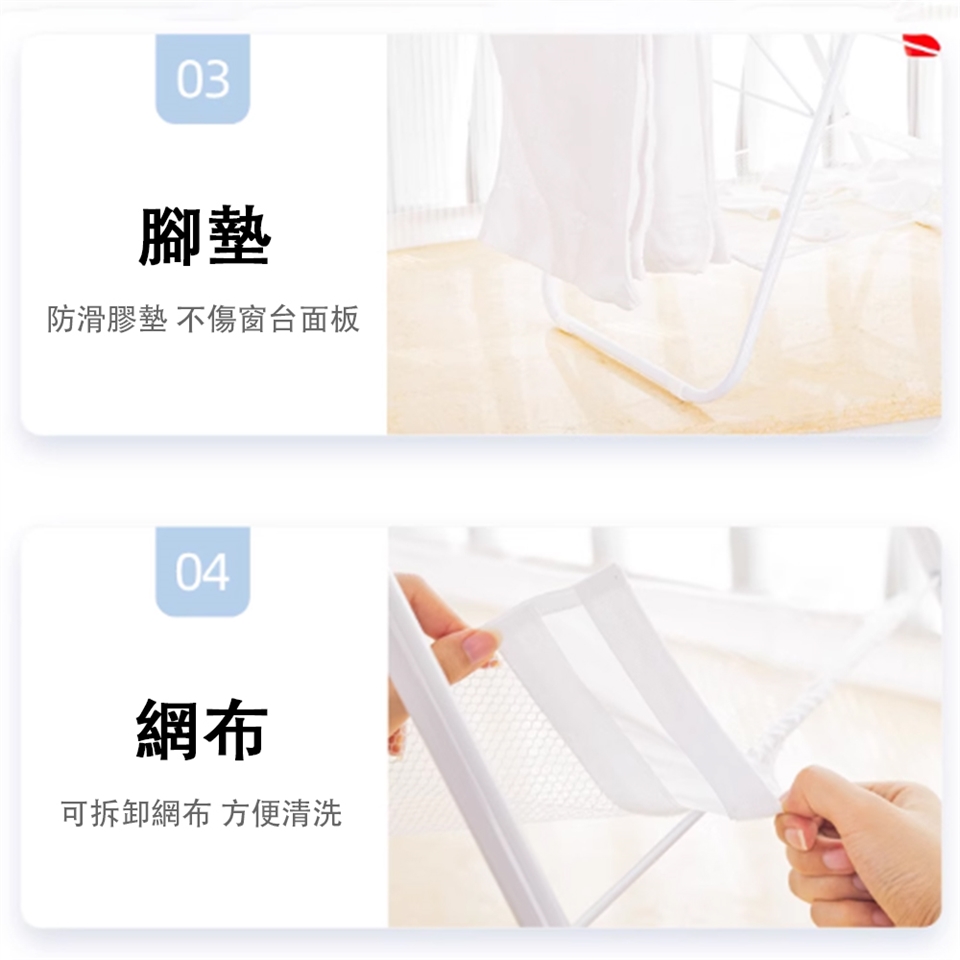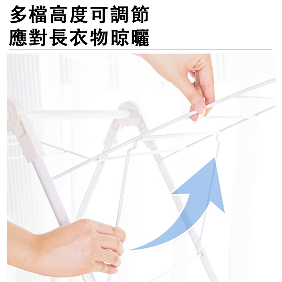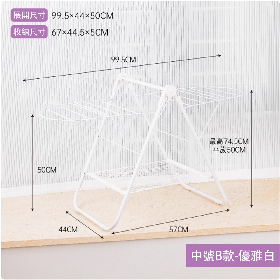 展開即可使用,側邊可調節高度,應對不同晾曬需求