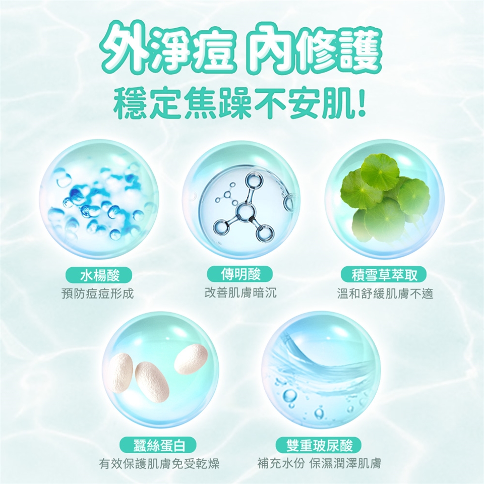 ・三重修護配方:水楊酸、傳明酸、雙重玻尿酸