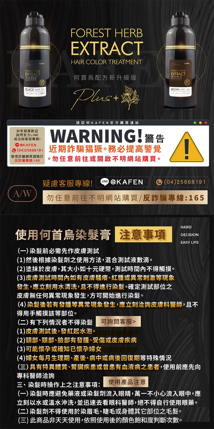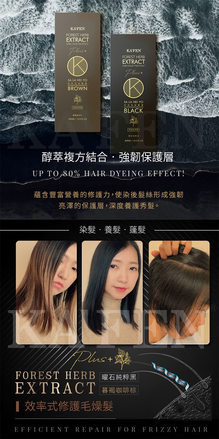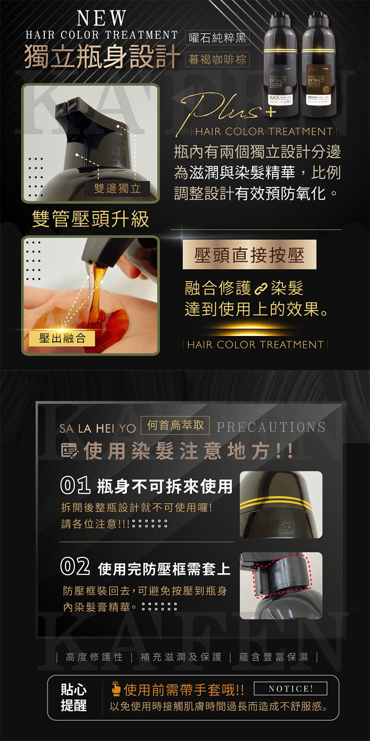 KAFEN卡氛何首烏洗式染髮膏400ml純粹黑