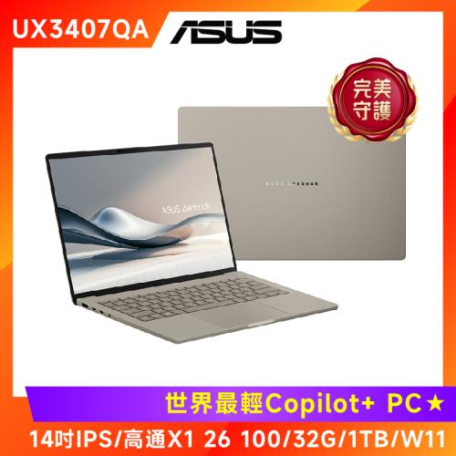 (6好禮) ASUS Zenbook A14 14吋AI輕薄筆電 -高通X X1 26 100/32G/1TB/UX3407QA-0072D26100