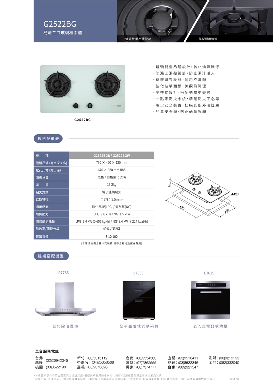 • ▪ 爐頭雙重凸簷設計,防止油漬髒污