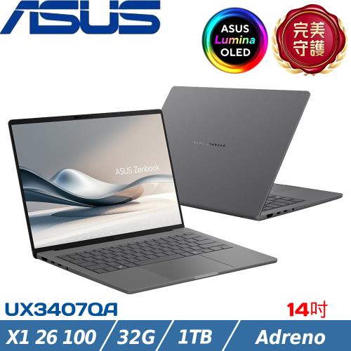 ASUS ZenBook 14吋輕薄筆電 X1 26 100/32G/PCIe 1TB SSD/W11/UX3407QA-0082G26100 灰