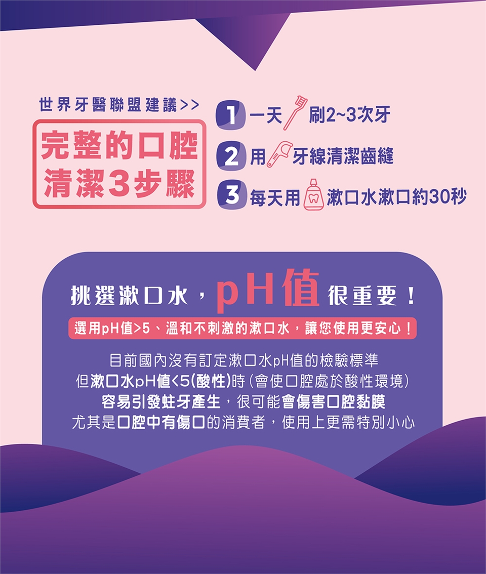 ‧使用漱口水30分鐘內,請勿喝水及吃東西。