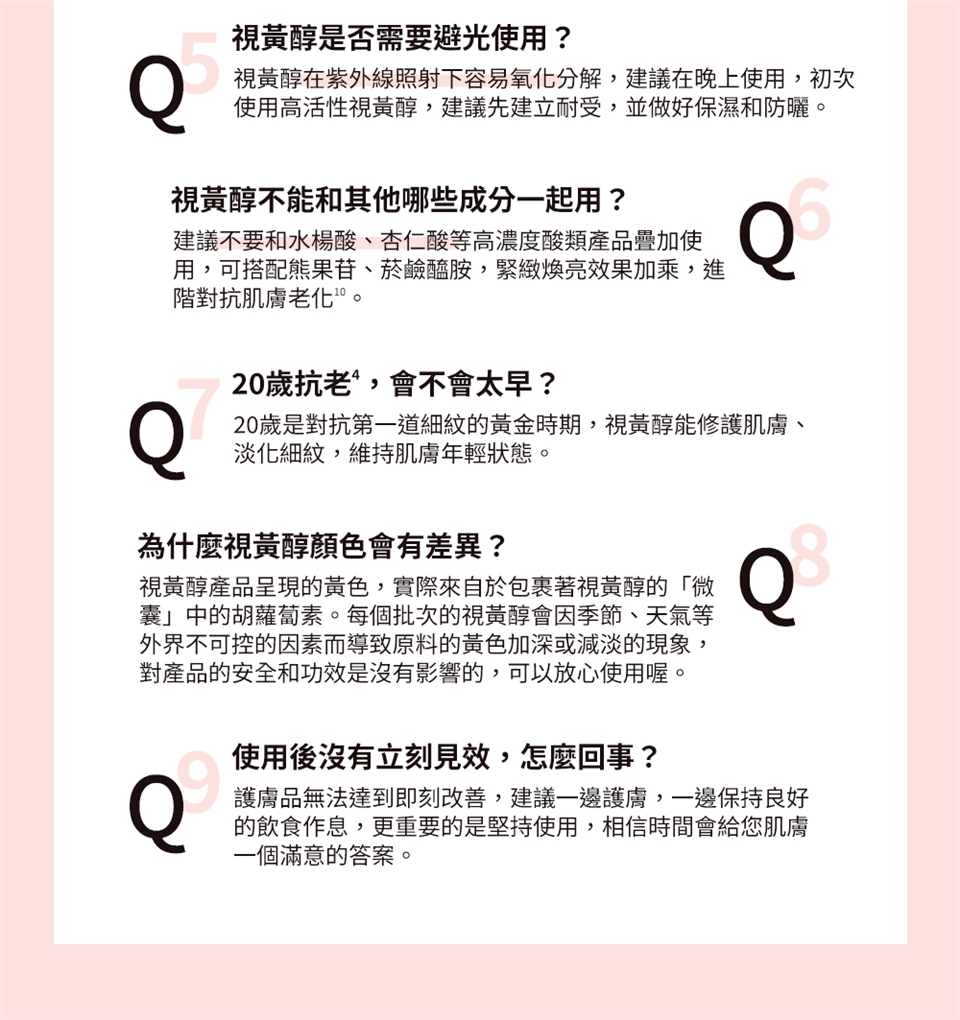 2. 視黃醇類產品建議晚上使用。
