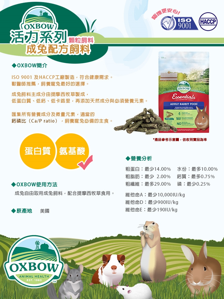 ◆成兔自由取用成兔飼料,配合提摩西牧草食用。
