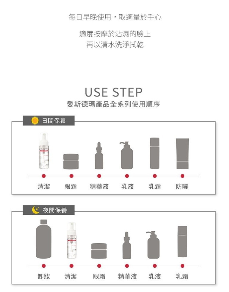 建議先用溫水將臉打濕,取適量泡沫塗抹於臉部肌膚,加以按摩至潔淨即可。