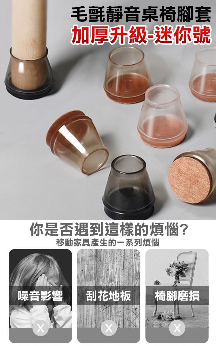 【COMET】加厚升級毛氈靜音桌椅腳套8入組-迷你號(桌腳套 椅腳套 防刮腳套/TCLC-04)
