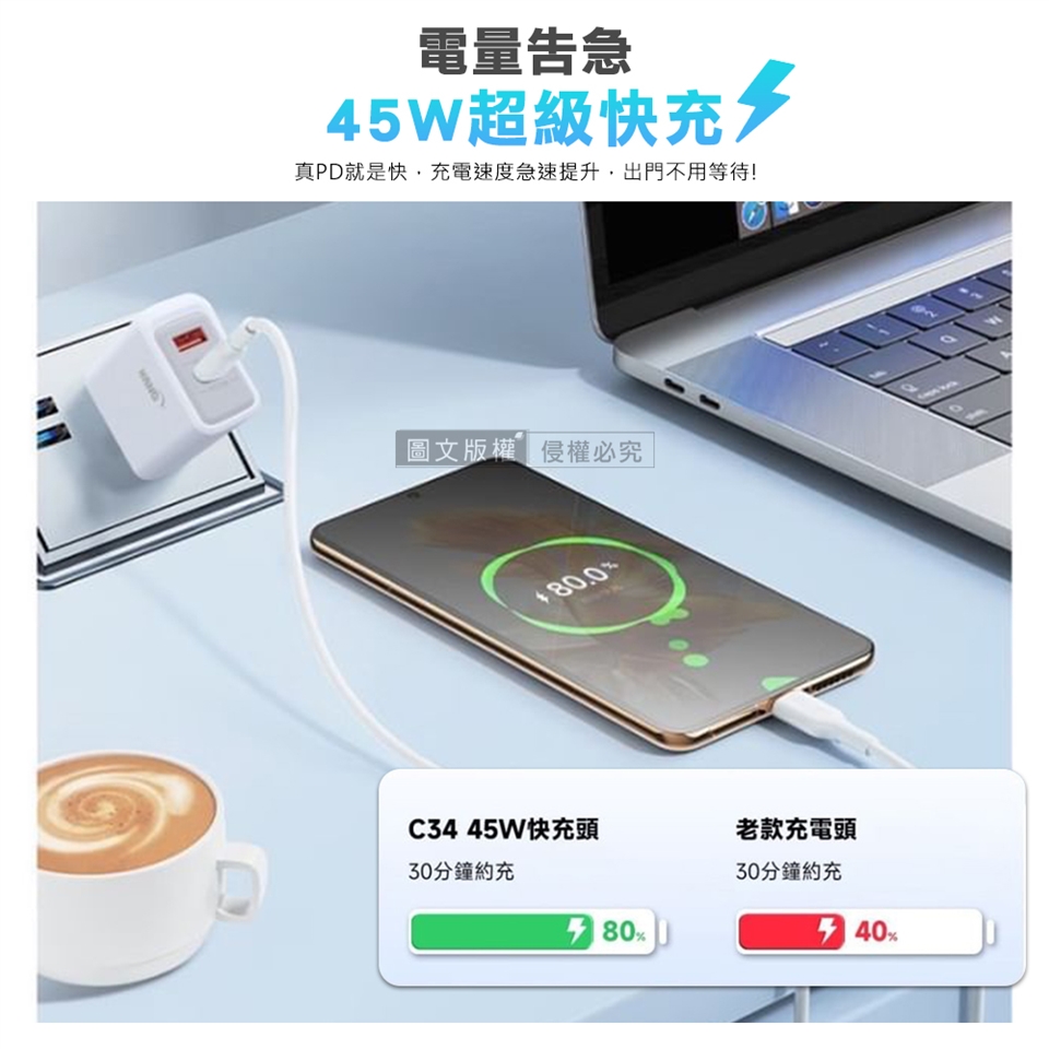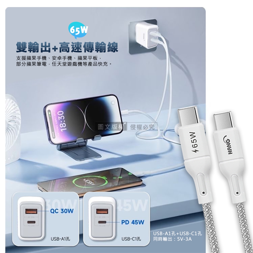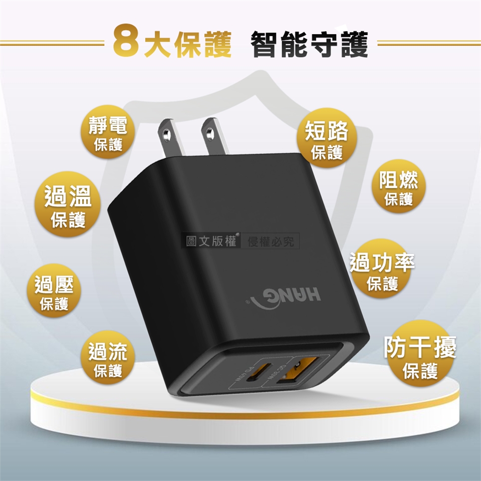 將本產品插入國際兩孔插座,輸出端連接對應傳輸線及設備,即可使用。