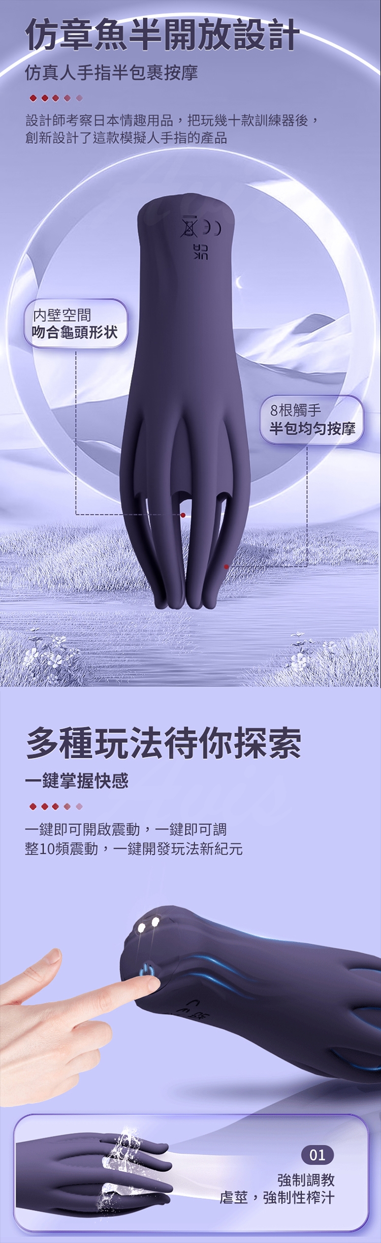 魔淫8爪:柔韌觸角緊密貼合,隨震動頻率收縮包覆,刺激升級。