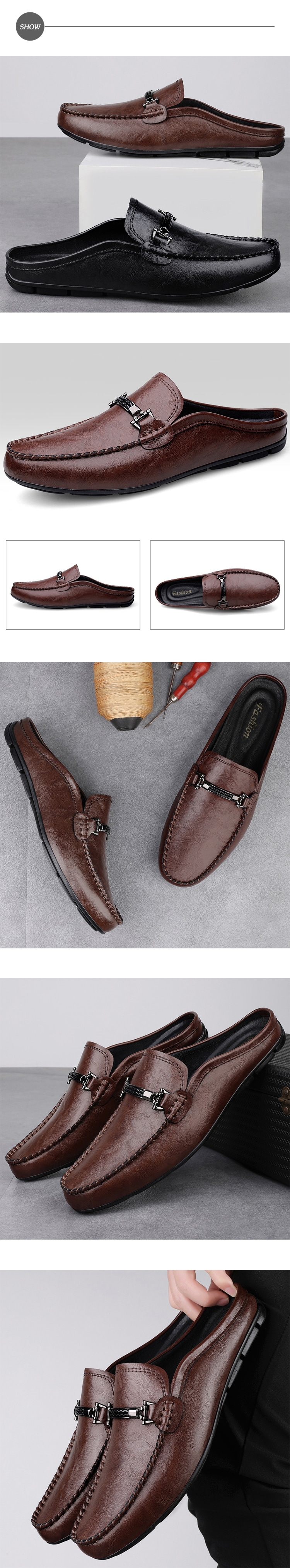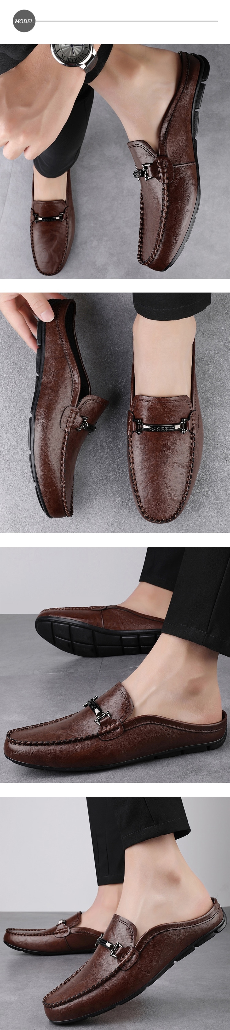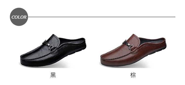 【ANSEL】真皮馬銜釦包頭低跟拖鞋/真皮個性金屬一字馬銜釦飾包頭低跟拖鞋 男鞋 棕