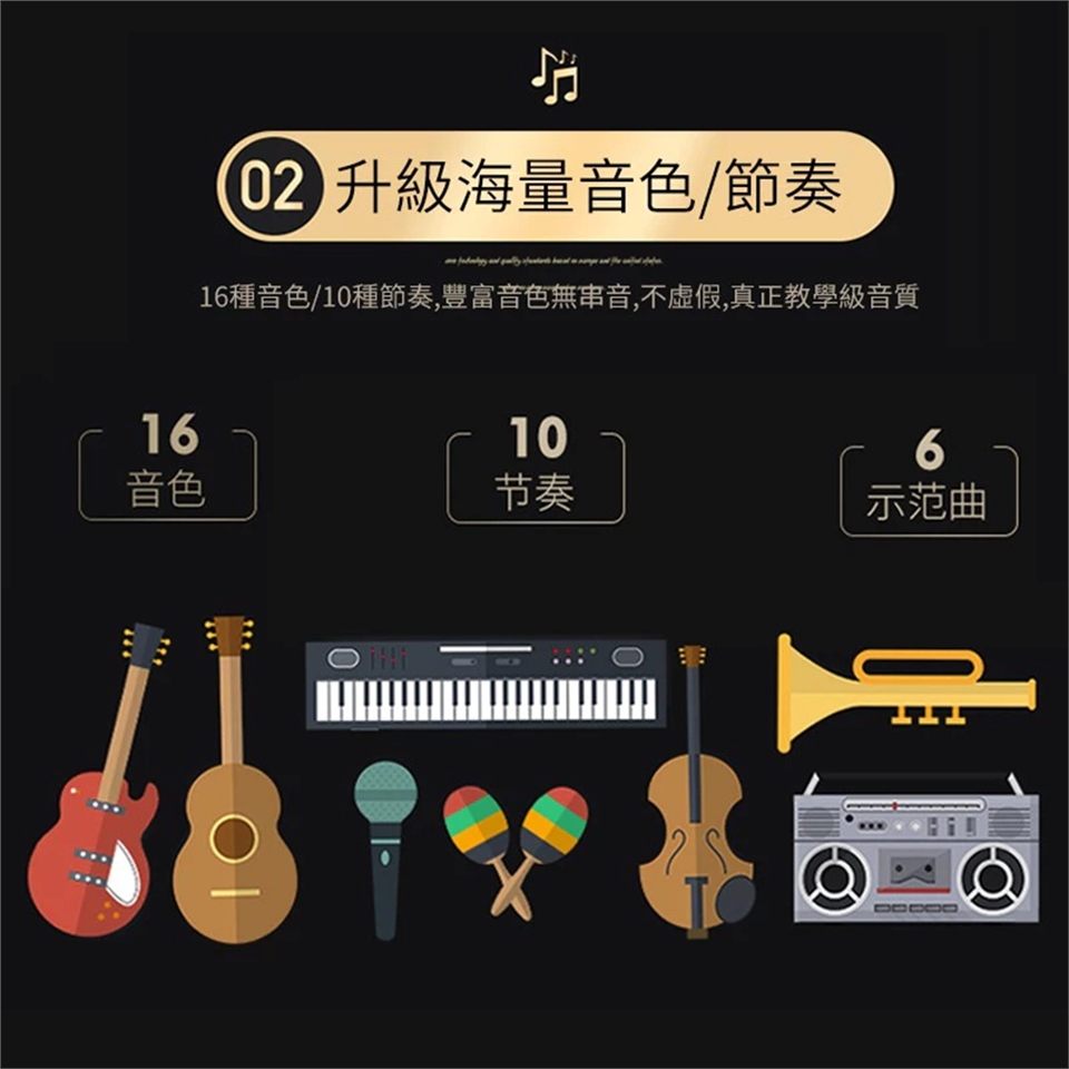 16種音色/10種節奏,豐富音色無串音,真正教學級音質