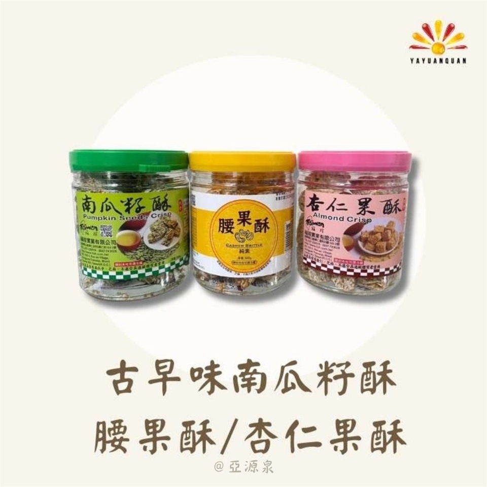 古早味南瓜籽酥/腰果酥/杏仁果酥以精選優質堅果為原料,依傳統古法精心製作,保留了每一口的香脆與濃郁堅果香。