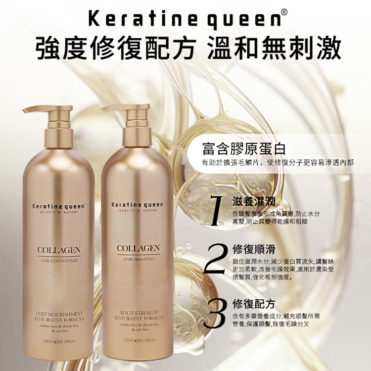 白綿密泡沫富含膠原蛋白,讓髮絲柔軟順滑;雙重保養作用,改善粗糙髮質。花香調和,不刺鼻。